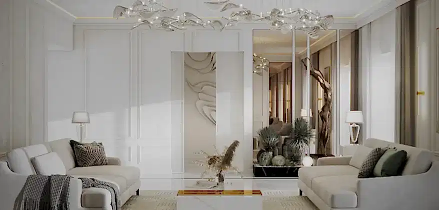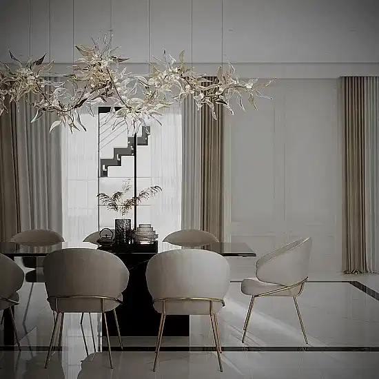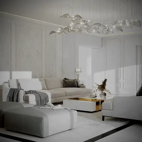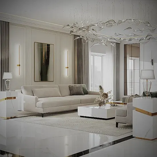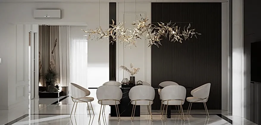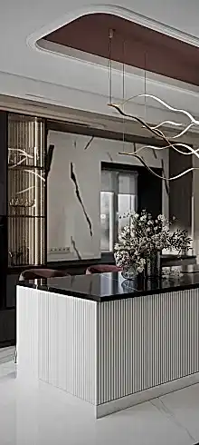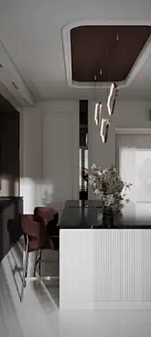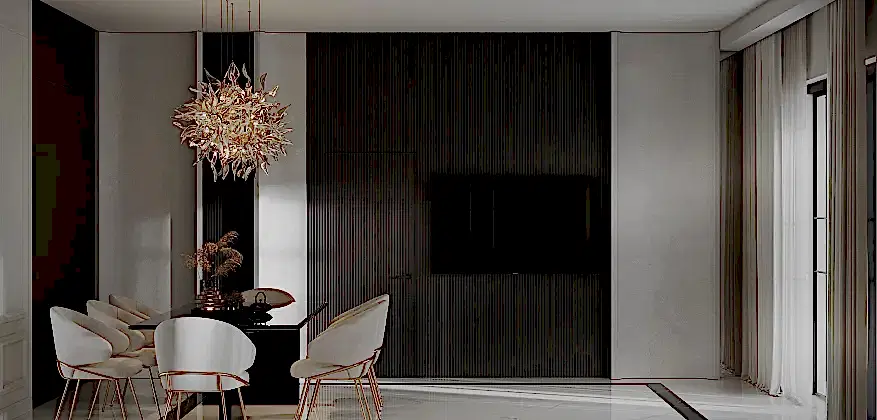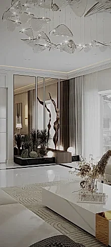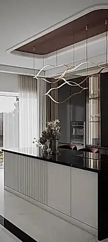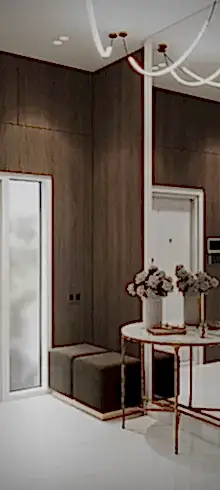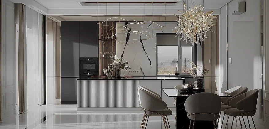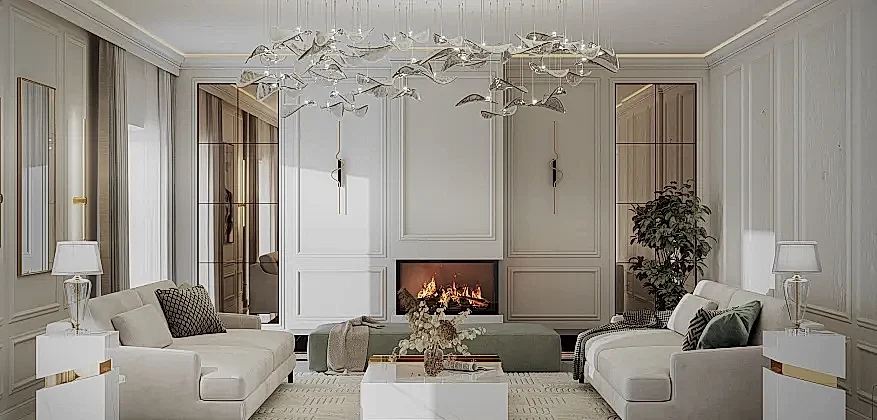 Дизайн-проект создавался для 1 этажа частного дома, на котором располагается общая зона. Основной запрос заказчика был на более классический интерьер с элементами роскоши.
