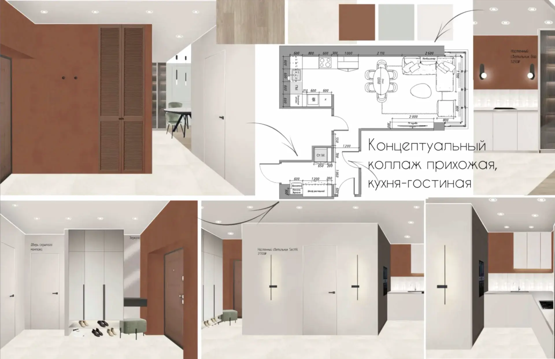 Разрабатываем прототип дизайна в виде коллаж-концепции по каждому посещению, с вами его обсуждаем, правим и утверждаем.